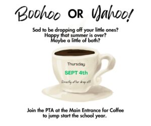 Join us after drop off outside the Garden Street entrance for some coffee and bagels.